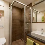 Balkong, soffa och satellit-TV samt mikrovågsugn, vattenkokare och kylskåp finns också här. I denna lägenhet finns separat toalett och dusch.